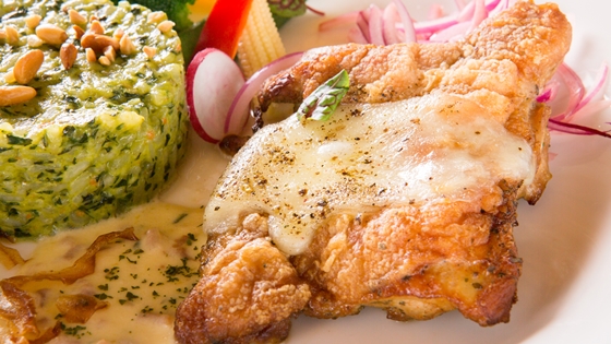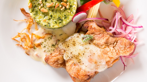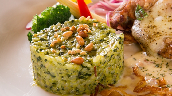 香煎成金黃的雞排,入口多汁軟嫩,佐著綠色蔬菜泥,光視覺上讓人驚豔不已,口感也是一極大享受!