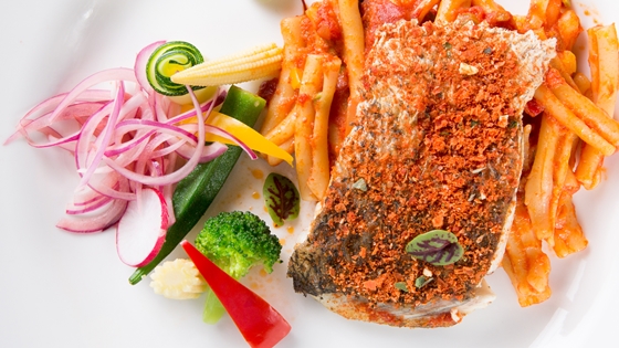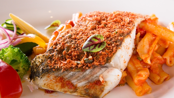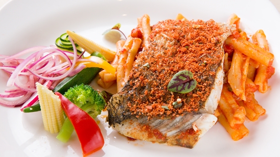 香煎金目魚佐麻花捲麵